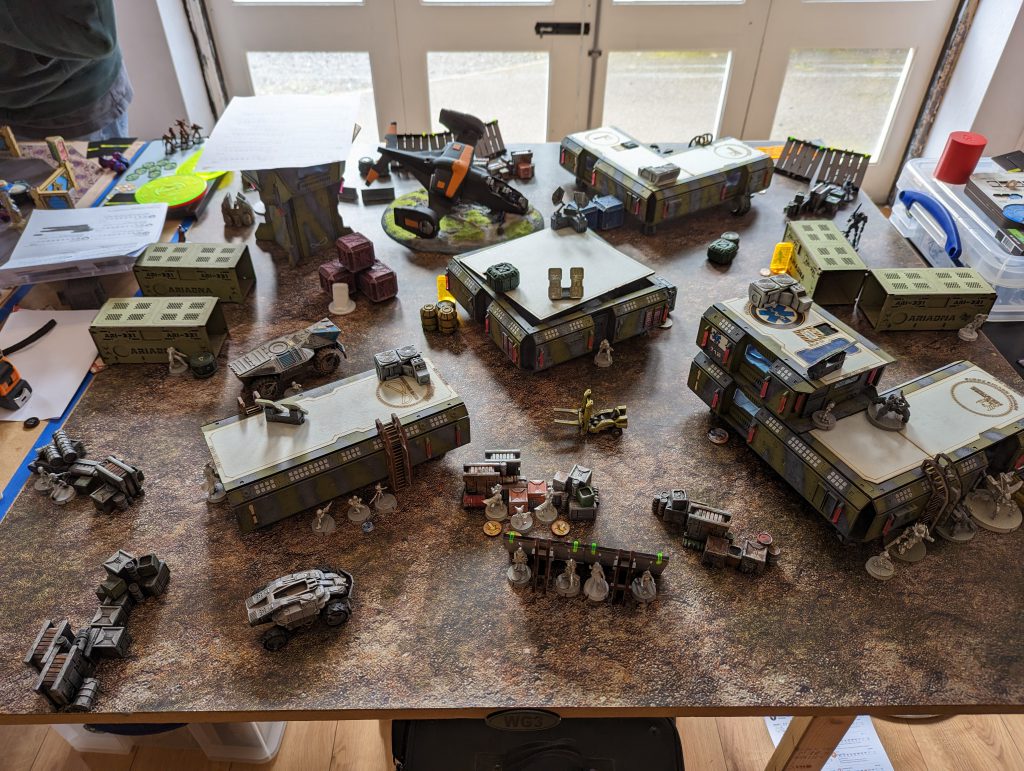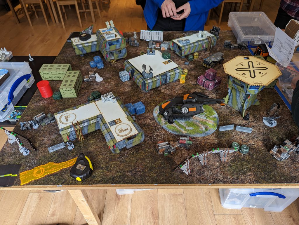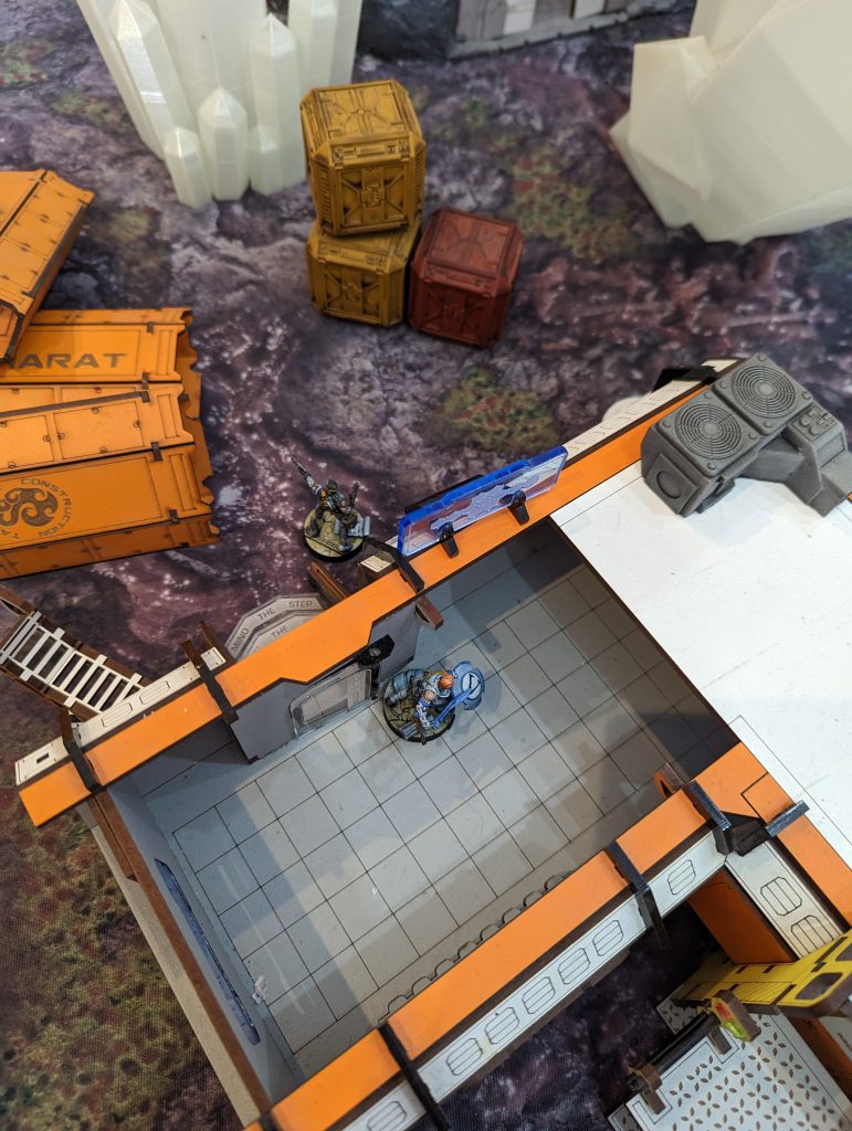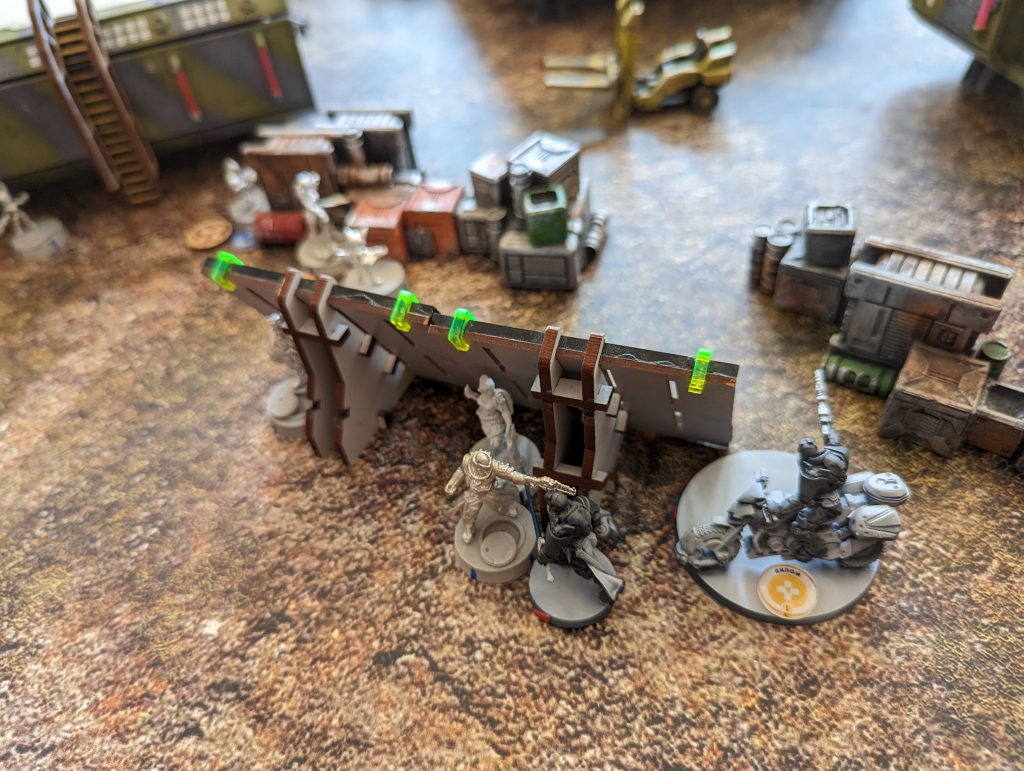 I basically wanted to use the same list I took last time for Biotechvore and Frostbyte. Those are very specific missions, but I thought that my relatively elite set-up would still be fine for dominating ground in Supremacy, and I had one great mission specialist for Supplies in the Montesa paramedic. Indeed the Crosier paramedic could also be dragged forward by the Teutons to score in that mission, and the Tikbalang’s Crab-bot pilot could try if it needed to and everything else was dead. I did make some small tweaks to previous experiences and the missions. I removed Mendoza for Dart and a Trinitarian Tertiary with SMG. I thought that ultimately Dart was nearly as effective a midfield killer, and with her Unhackable nature and MSV1, maybe a better complement to the Tikbalang. This let me have another model, more Hidden Deployment shenanigans and another specialist to cap objectives. Secondly, after much thought, I swapped the Trinitarian sniper for a boarding shotgun minelayer. I figured that capping the Supply Boxes, and scoring consoles or quadrants in Supremacy, would be the core aim of the games. As fun as a hidden sniper is, its role would be less important than those directly game-winning moves. I also wanted to throw some doubt onto which Mimetism-3 camouflage marker was Dart, but of course that is very unlikely against a savvy opponent. These changes did present a slight issue. Instead of a sneaky Hidden Deployment ARO in my second group, I now had two lonely Hidden Deployment mission specialists with no other orders to fuel them. I debated moving at least one into the first group, but eventually decided I should earmark 2 Command Tokens to move them if necessary, and that by deploying them next to Objectives, they would always be able to have one cheeky WIP roll to activate them at the point they revealed.