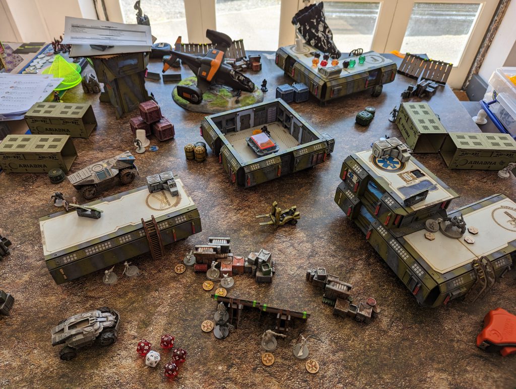 I was clearly going to be in Retreat at the start of my Round 3, and my opponent had little to do. We rolled it out and determined he could activate two more consoles, and Phoenix was still securing my HVT, so we agreed to call it there. I didn’t take my third turn, since I would have been unable to score 2 quadrants or to get any consoles - Atalanta and Phoenix had me locked down. I could have rolled a Lt panzerfaust shot at one of them for spite, or sacrificed my Crosier paramedic to try and bring my Teuton ML back and try the same with him, but honestly it wasn’t worth it.Summary