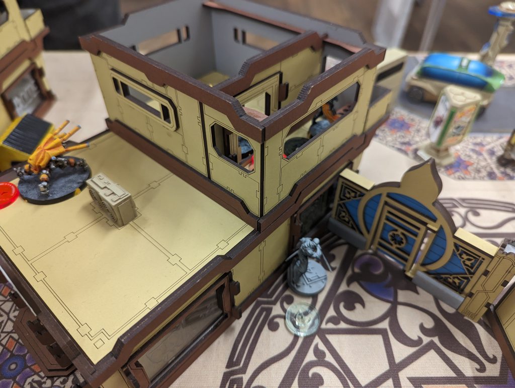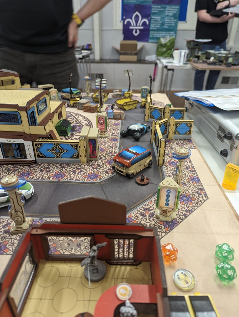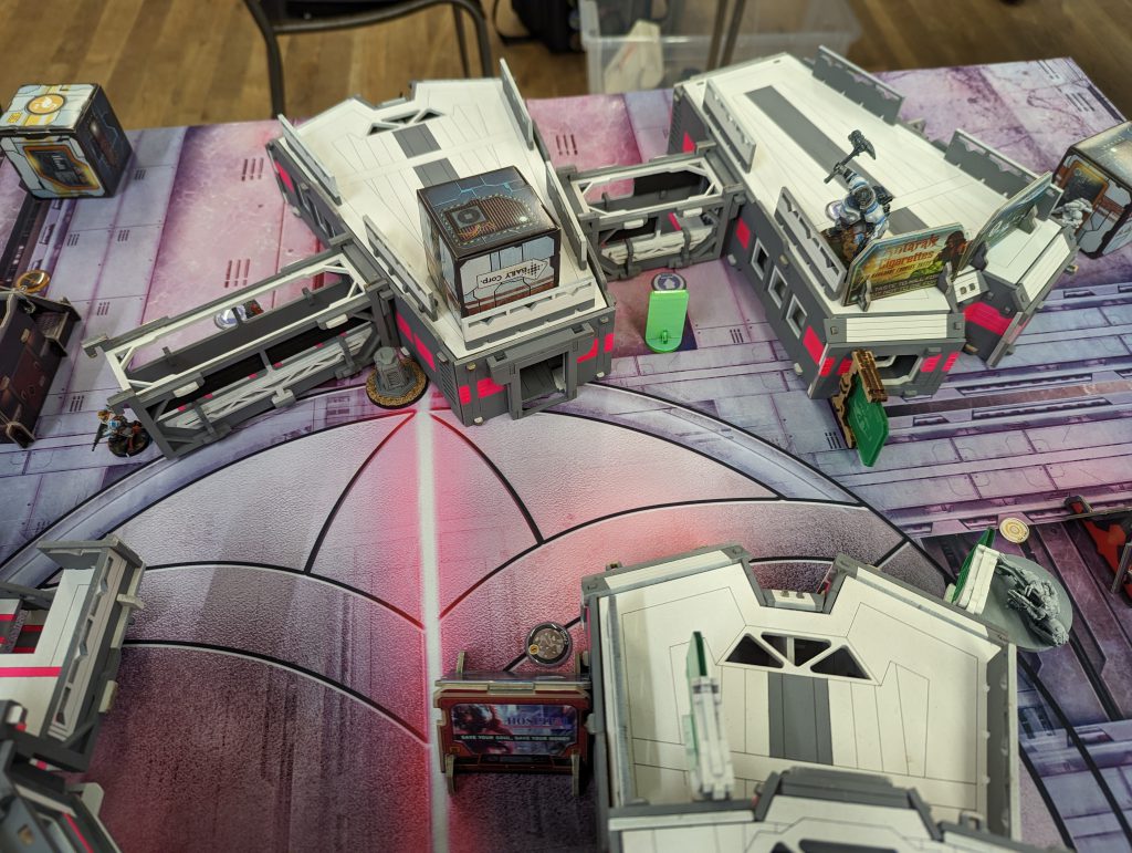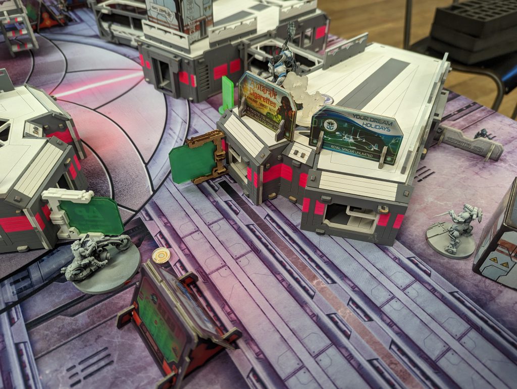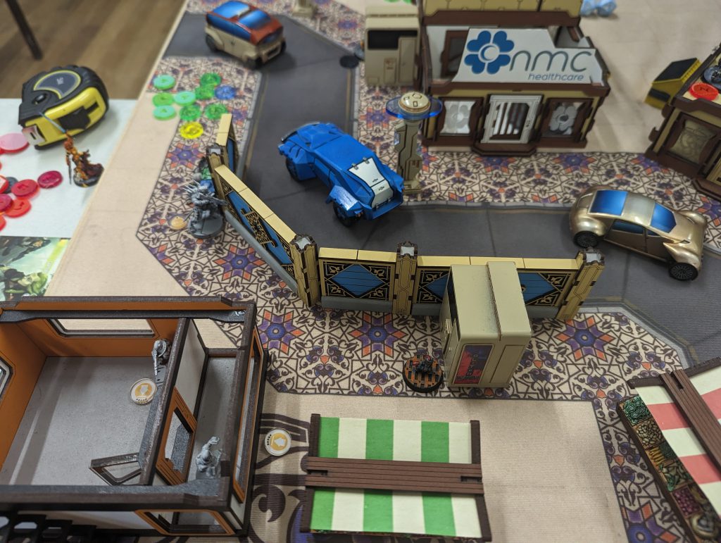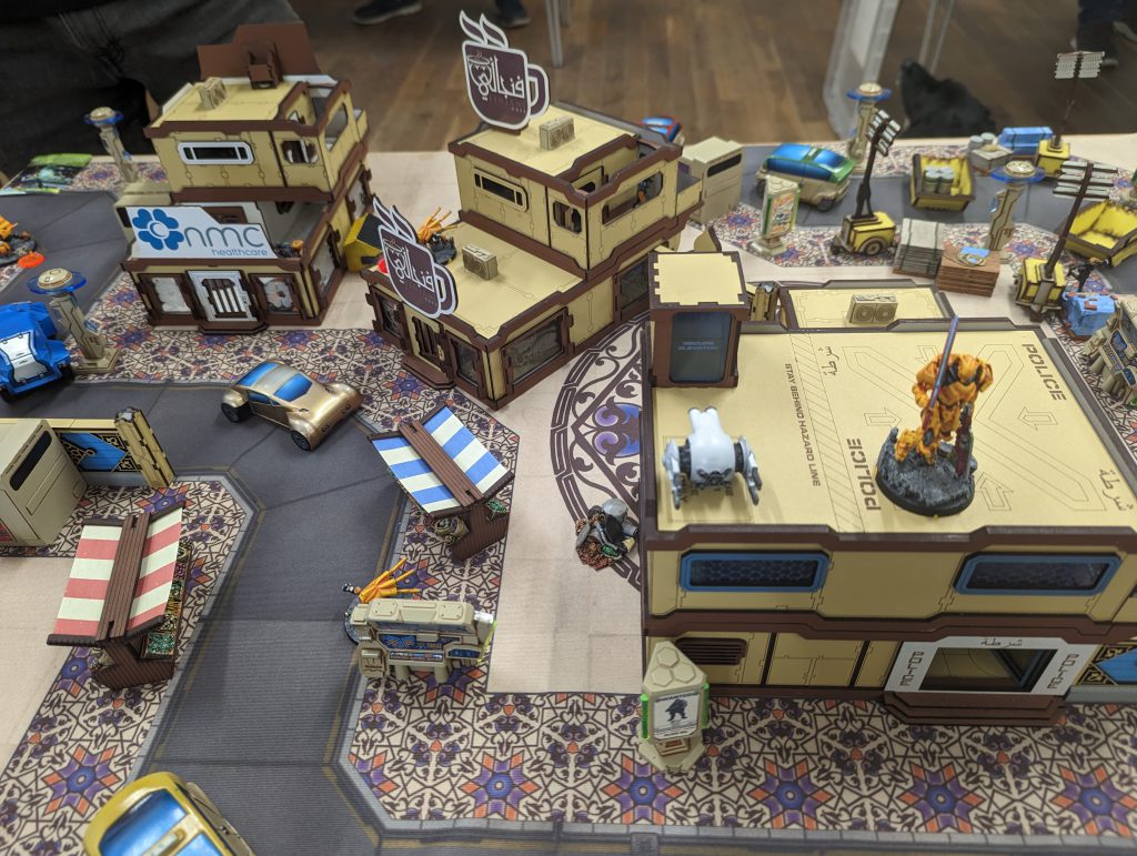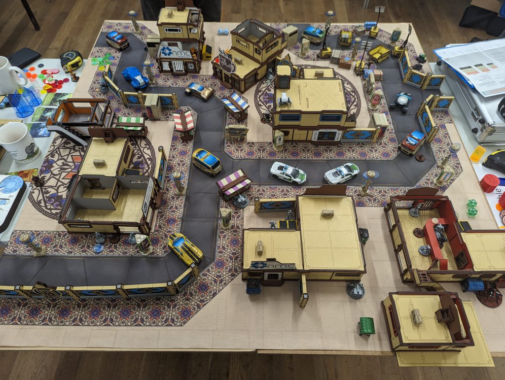 MO dominate the table. Suppression everywhere. Bulleteer (just visible on far left); Pathfinder in centre; Tikbalang on the roof.