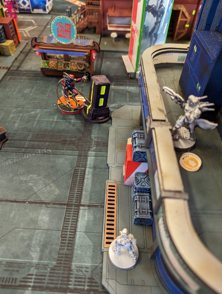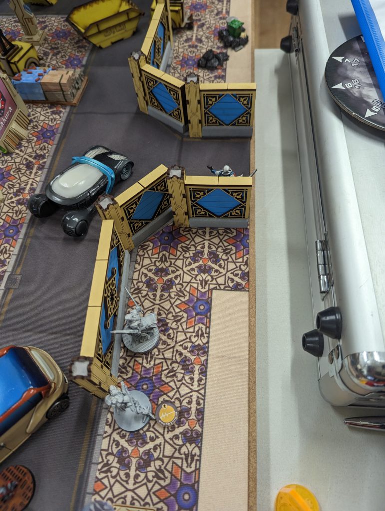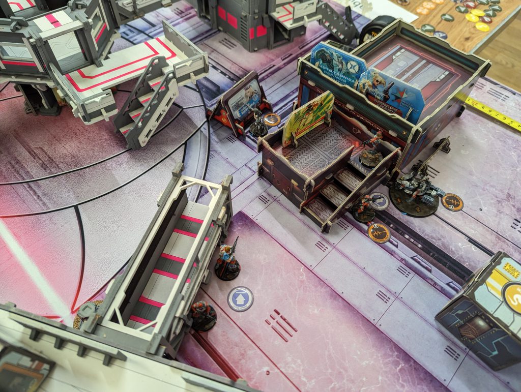 I deployed my Duo on my extreme right, out of cover on the touchline, ready to storm forward, as there were no hard stop AROs and I trusted Major Lunah or the Hsien to deal with any that appeared as the reserve drop. My opponent counter deployed his Speculo to hamper, and indeed physically block, their movement up the board edge.