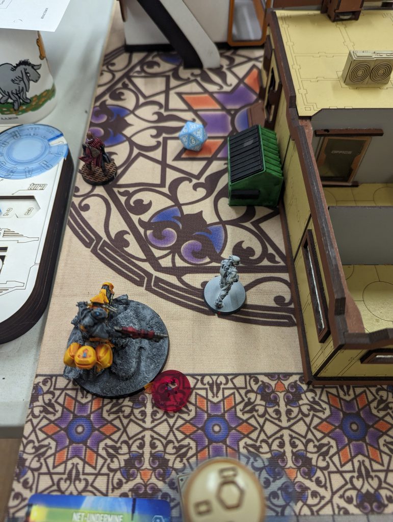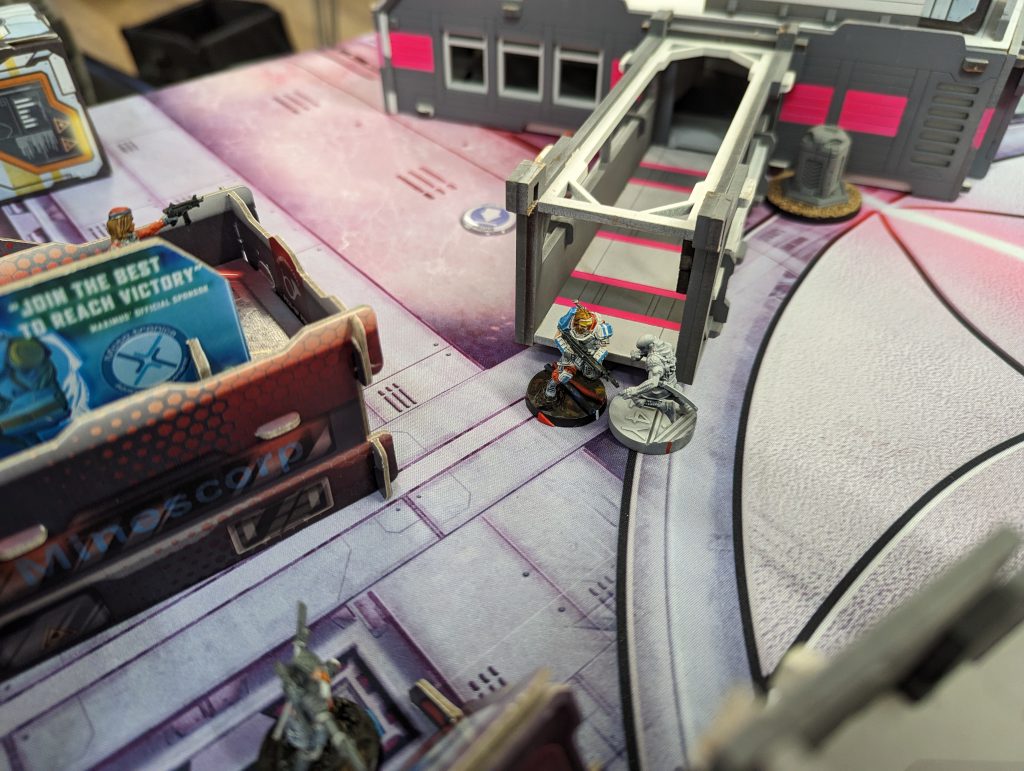 So I began Round 2 in Loss of Lieutenant, but honestly, the enemy casualties had been so heavy, that I didn’t think the game was in any doubt. I revealed my Ninja hacker and he did exactly what I wanted, touching the right hand Objective unobserved and activating it easily thanks to the +3WIP, +1Burst bonus hackers (and engineers) get in Acquisition.