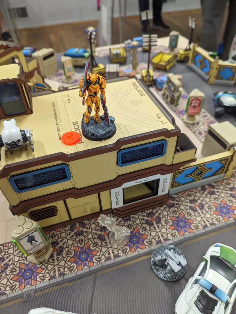 At the end of the day, I placed 8th of 25 players. Not my best result, but had three very interesting and enjoyable games. In many ways the loss taught me more about ISS than the wins, but my god the Su Jian is a hard hitting alpha strike. I was probably lucky to go first in both games I used it, since Combined Army might easily have neutralized it with hacking, or Kosmoflot with a Bearpode. It would be interesting to play it into a faction with a real defensive hacking net, which I think is its Achilles' heel. That was present to some extent in the second game, but ultimately the MBH and the freedom of maneuver that 8 inch movement gives stopped it being held up. I also definitely need to include Chain of Command, or a Lt who is not my Turn 1 ARO-breaking piece. I am keen to play the Sectorial more, and hopefully even paint the models.The event was won by Riker, one of the most experienced and consistently successful tournament players in the UK, using Spiral Corps. It was a very tight field, as usual with this event, and many attendees who were "in it to win it" while still retaining a relaxed, fun atmosphere. Props as always to Laina for organising, with excellent prize support and home-baked desserts to boot. Any interested readers can see the full results here.