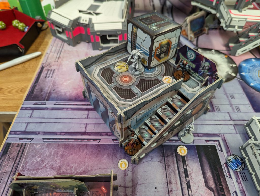 Cheap mercs for the win! The CSU caps the left hand Objective once the MBH has back-shot the Anathematic to death.Overall a great initial run for the Su Jian rambo maneuver. Sorry to Gabriel for my merciless behaviour and no doubt aggravating good luck, he was a gentleman about it throughout!