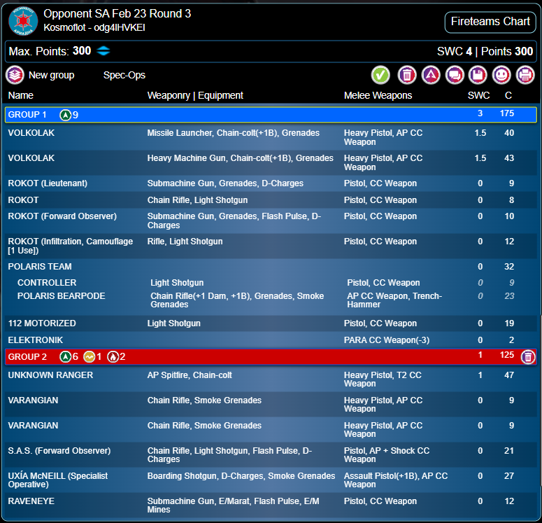 In fact, as I began Round 2, I suspected he was already in Retreat so the game would end at the end of his next Turn. This wasn't the case, I see now he had 83 pts remaining, but in fact to secure the beacon I would end up killing more and that would send him into Retreat. I sacrificed the MBH to an E/M mine with its own Irregular Order, just to clear it for the Su Jian. I engaged his Rokot, which revealed from camouflage, in the same Order but didn't kill it. I then moved the Su Jian across the table, killing the Rokot and going into NWI. The only remaining obstacle to seizing the objective and moving back to my DZ was the Volkolak HMG. I revealed my Ninja, moved up to him as a marker, and engaged in melee. This was very early a coin flip as Volkolaks have Natural Born Warrior, but I was still on 23 against 19 thanks to Suprise Attack. I was lucky enough to crit and finish him off. The Su Jian then waltzed off with the beacon.