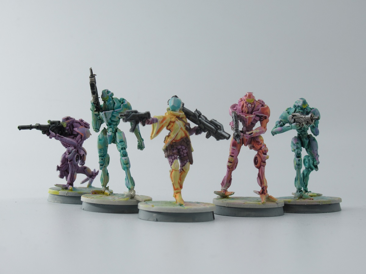 Each of the factions has a number of Sectorials. These are cut down, thematically linked fighting forces based on a specific planet or mission - the Varuna Immediate Reaction Division, for instance, is a SWAT team employed by the PanOceania government on an ocean planet, so they specialize in underwater infiltration, light armour and aquatic operations. A Sectorial loses the full range of options available to the core faction, but to compensate gets access to fireteams - the ability to have a squad of five troopers move and fight in unison.