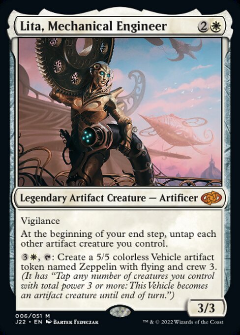 FromTheShire: Mono white artifacts is definitely limiting yourself somewhat, I think I'm mush more likely to slot this in to and Esper shell to give your team pseudo-vigilance which is pretty excellent. The Zeppelin it creates isn't bad either.Beanith: I've been having a hard time with Mono-white artifact decks in MtG Arena Standard at the moment so Lita will have to excuse my fit of pique. That said, I kinda also want to see how many Zeppelins I could spawn in too...