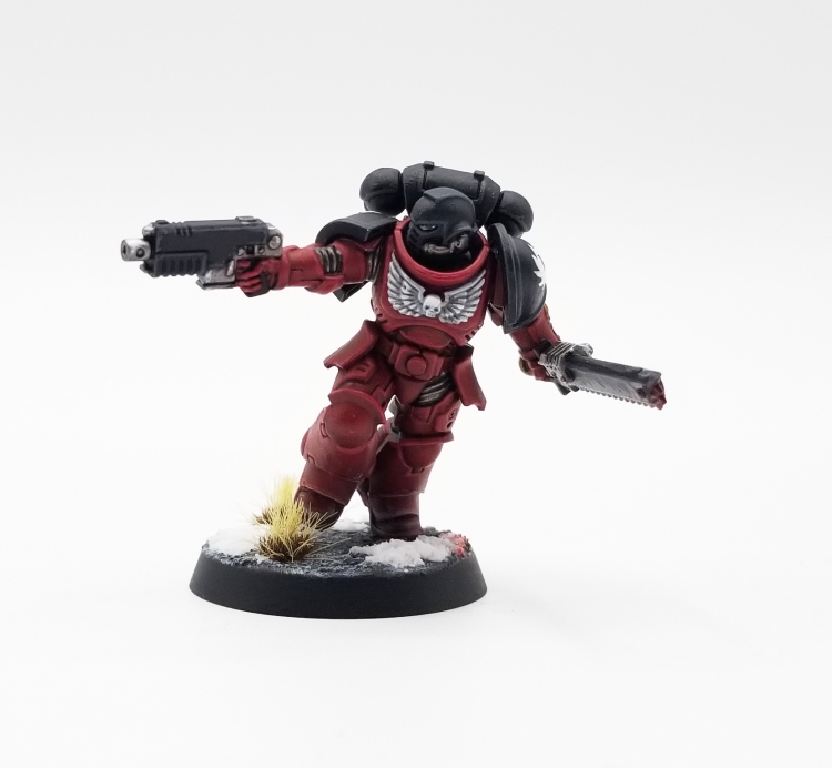 Your standard ranged operative, the bolt rifle (or auto bolt rifle) are both solid choices that do work, though if your opponent sees you toting auto bolt rifles, and auxiliary grenade launcher and a heavy bolter they'd be daft to have models within an inch of each other.An incredibly solid trooper with a good gun and even with fists the ability to pop the heads off 7 wound models fairly reliably in fights.