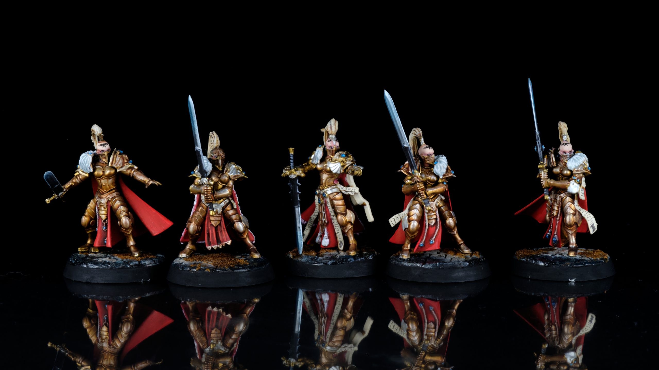 These have 8 wounds, 4+ saves and hit on 3s in shooting, 4s in melee. These are just the same as Kasrkin, just with fewer options, so they're the one group you probably don't need to buy.Five Sisters of Silence