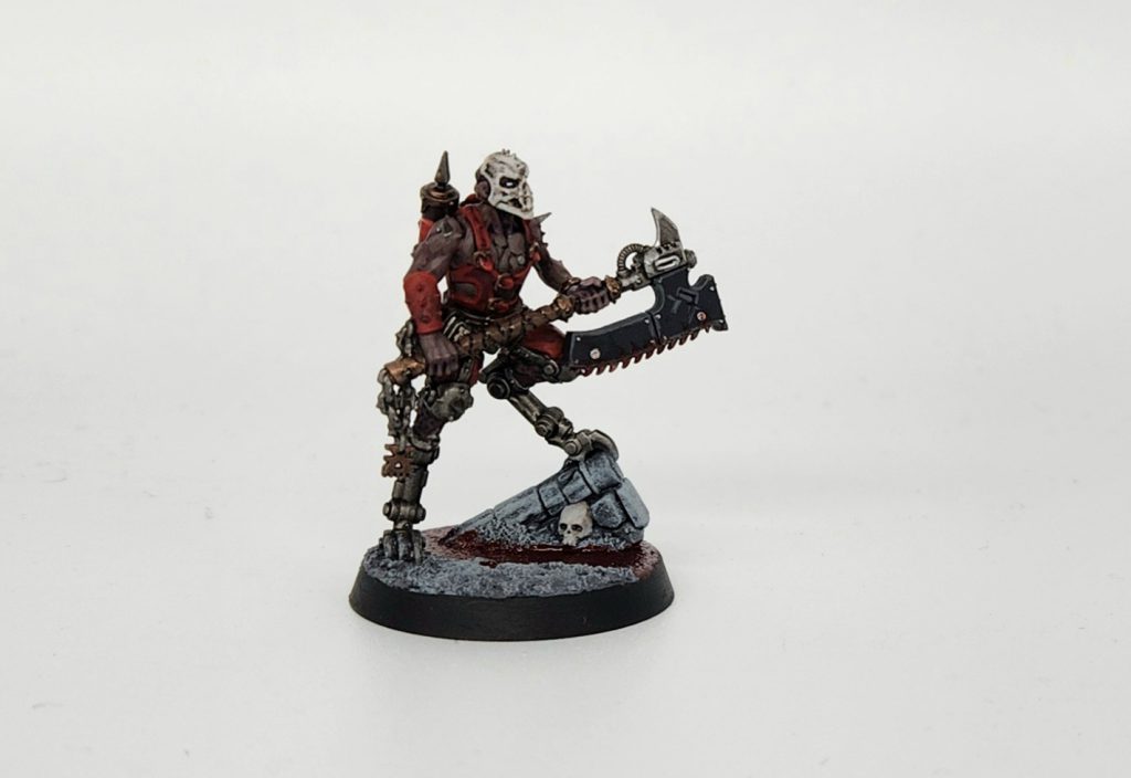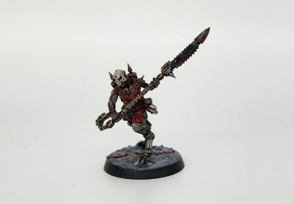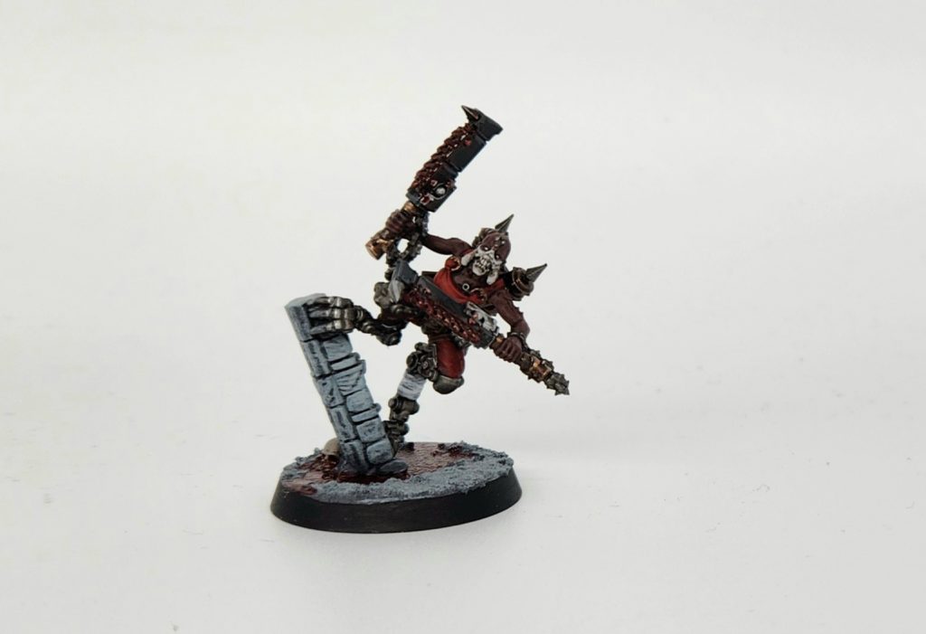 The Leader. Comes with the obligatory extra wound is armed with a 4/5 dmg, +3 hit/wound, and Rending melee weapon and has a 4/4 dmg flamer, one of the stronger ranged weapons on the team. Even more impressive, the Herald can negate the damage of a single attack once per battle, and can automatically fill their gore Tank to half at the beginning of each activation effectively meaning this guy can ALWAYS be 3 APL. Insane.
