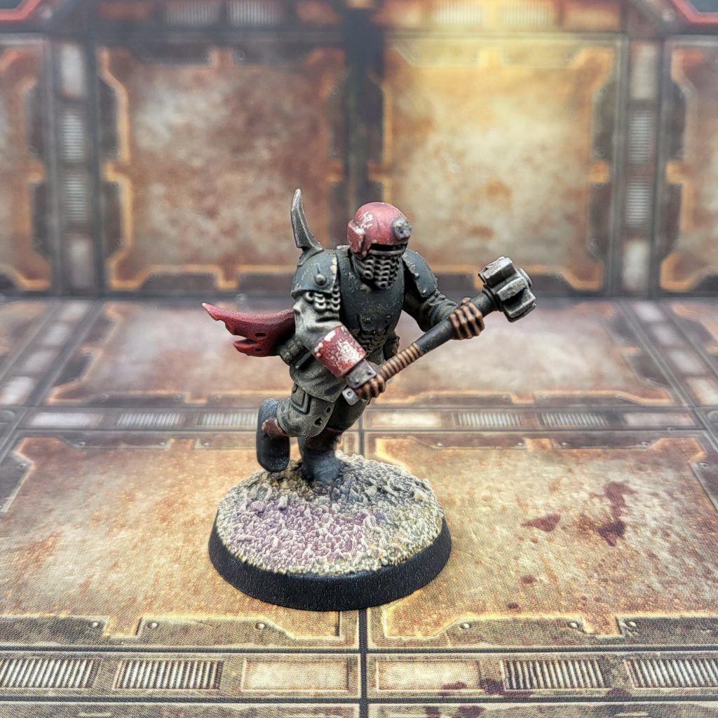 Basically a regular trooper except for his two unique abilities, both of which require APL to perform. Signal (1 APL), the most directly powerful of the two, allows him to increase the APL of another operative by 1 as long as they’re within 6 inches of him. Sacrilegious Actuation (1 APL) allows him to transfer a blood token from one operative to another as long as they're BOTH, within 6 inches of, and visible to the Commsman. A key detail is that you have to have a valid operative to reassign the token, otherwise you can’t perform this action, which means you can’t use this ability to snag tokens from doomed operatives and add them to your pool. With this in mind your best strategy is likely to never assign a token to this operative, so that he can be the target of his second ability in times of need.