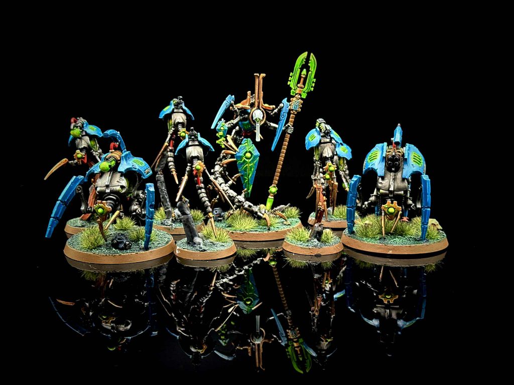 Truthfully, I haven’t had much of a chance to accomplish either of these. September was a very busy month. Crunch time at work has kept me very busy, and what hobby time I did have in the first half of September was taken up by Tomb World. I did manage to paint an entire Canoptek Circle team in that time though, and I’m extraordinarily pleased with how they came out.