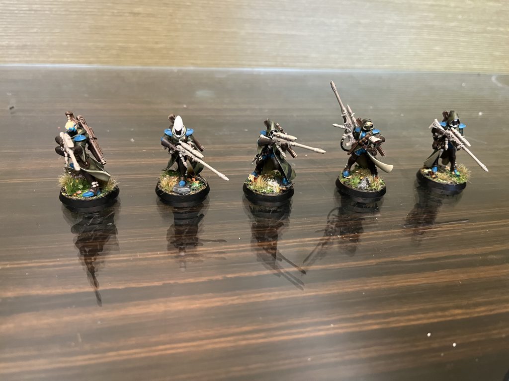 Sniper specialists who come in sets of fives. They all hit on 2+ with the sniper rifles, and have access to Hidden Paths to sneak about the board quickly. Additionally their Camo Cloaks provide an additional retained cover save making their 5+ saves feel much stronger.