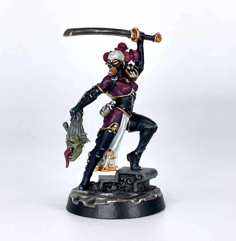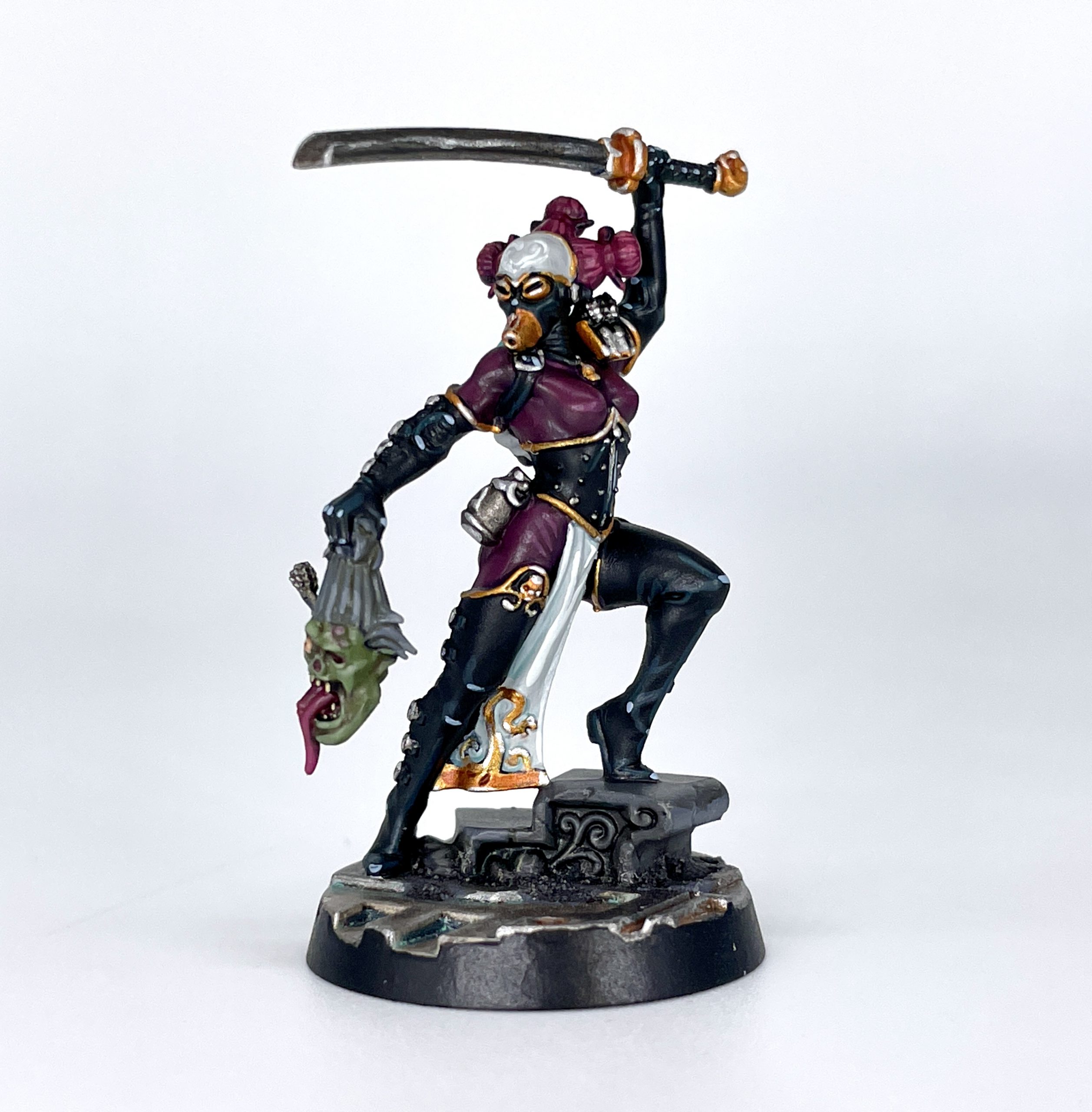 Elucidian Starstriders, Death Cult Executioner. Credit: SRMPretty much the best (and really only) melee operative the team has access to. Armed with her power weapon, which deals 4/6 damage with lethal 5+, and hitting at WS 2+ she can deal with almost any enemy. She also has her narcotic darts with lethal 5+ and stun which along with her 3APL can help control some hot spots. Another Spicy play is to shoot the dart and then charge, not allowing your opponent to disengage.