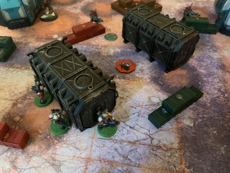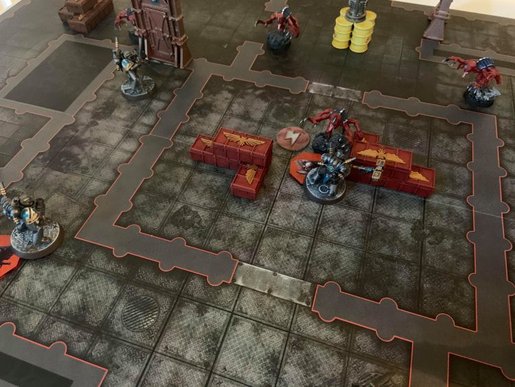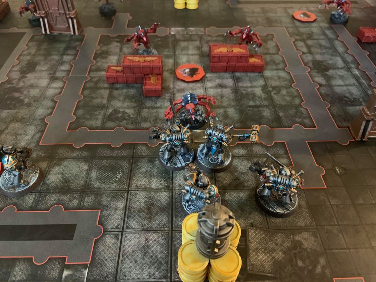 After: A Genestealer uses Decisive Move and blocks the entry way, preventing the Grey Knights from getting into the center room with an objective - Credit: Shane WattsDecisive Shot (2 CP)