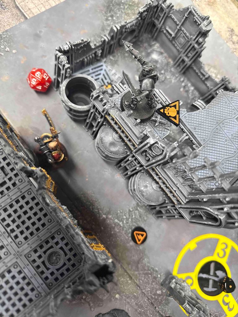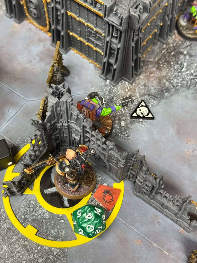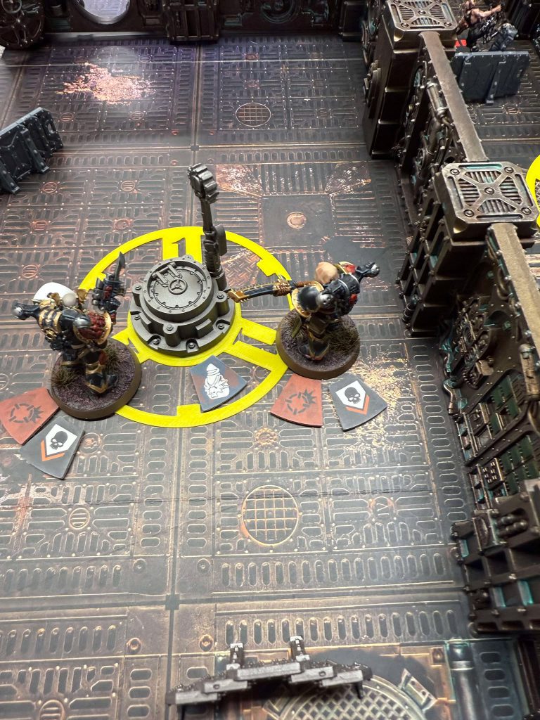I’m thrilled to play James. I’ve known him for a few months now, and I’ve come to know them for two things. The first is being one of the most effective community organizers I’ve ever met, managing to keep a crowd of a dozen people consistently coming down to play Kill Team on a Friday night for weeks at Goldmine as well as becoming one of the most influential figures on Kill Team in Texas as a whole. The second thing is that James is a ride-or-die Kommandos player. He’s played most other teams, but the Kommandos are his special boys, and have been through good times and bad. He’s a faction expert, if there ever was one. This was going to be a good time.The good time is almost spoiled before it begins when I learn we will be playing on Bheta-Decima, but one player asks if they can switch with us, since they’ve played the same board twice in a row. Now, I’m on sweet, sweet Volkus again, baby, and we are playing Loot.