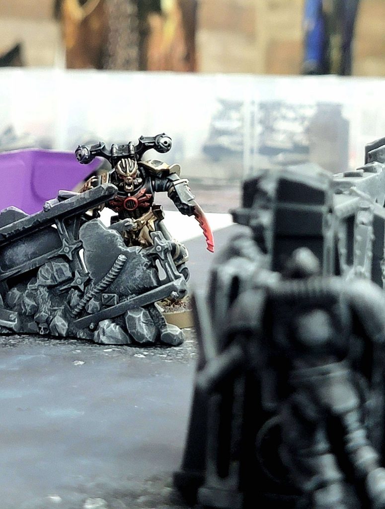 Twice as successful as I thought I would be! I’m extraordinarily pleased with this result, especially since both games one and two were tight. I hadn’t imagined I could win this event, but once it’s in my grasp I’d be lying if I said I wasn’t at least a little hungry for it. I watch the last match wrapping up between Kommandos and Nemesis Claw, which narrowly goes to Nemesis Claw, before the pairings notification goes up and I pray I don’t pair into sanctifiers.Round Three: James’s Kommandos