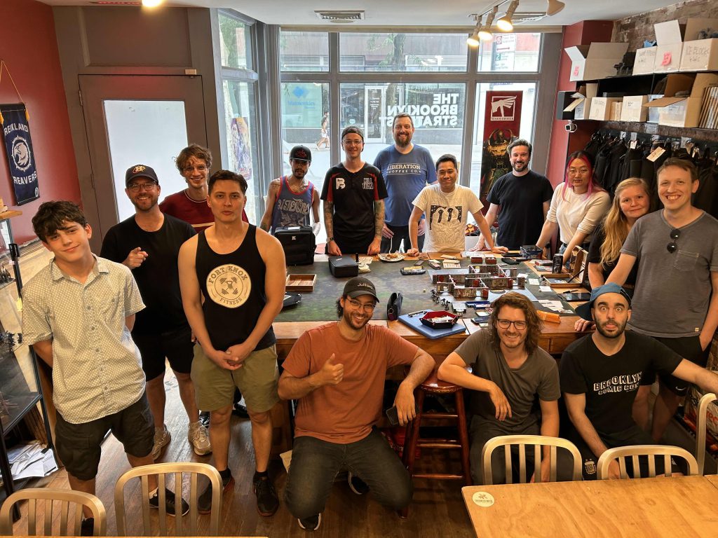 “We've been having regular monthly tournaments at the Brooklyn Strategist for 3 years now so for my second time TOing I wanted to mix it up a little and focus on pure fun. With my co-TO, the Compendium King Matt Opperman, we decided on a few silly buffs for everyone each round. First, everyone chose a Chaos God that gave them the Legionary marks to their entire team. Our one Legionary player got to choose an Intercession Chapter Tactic instead. This led to some crazy plays and cool stacking effects, like Nurgle marked Hearthkyn Salvagers' Wrought Defense. Most people chose Slaanesh for the extra 1" of movement. Second round the players chose a champion from their team to receive a Battle Honor specific to their team, and third round that champion got one piece of Rare Equipment specific to their team. While introducing narrative rules wasn't the most original, it kept things tidy and easier to manage. Everyone appreciated these extra twists and plenty of big laughs and big moments were had.”