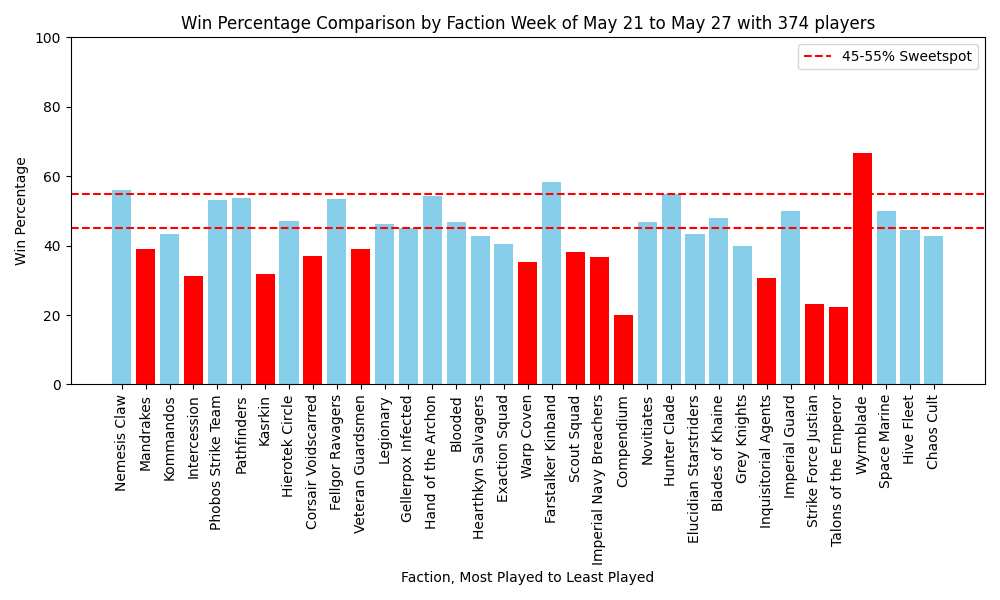 This weekend saw only one GT level event for Kill Team in the Bay Area Championships. Where the 55+% win rate of the Nemesis Claw came front and center. In fact the Bay Area Championships had some other interesting outliers in Warp Coven taking third while their faction suffered! Kill Team remains a game of pilots over team faction with win rates providing useful information but only presenting some of the picture.