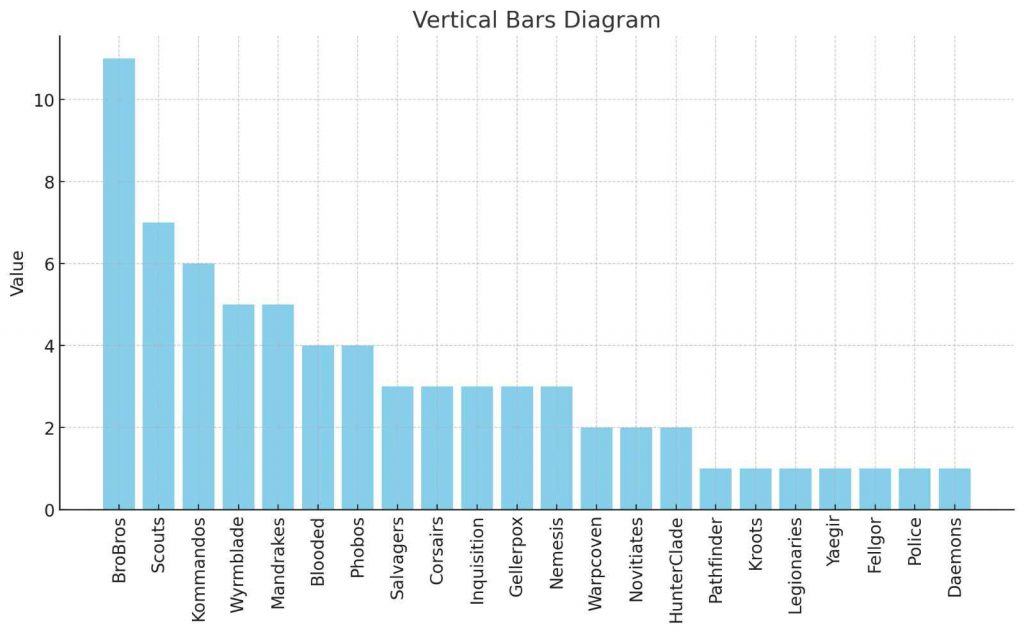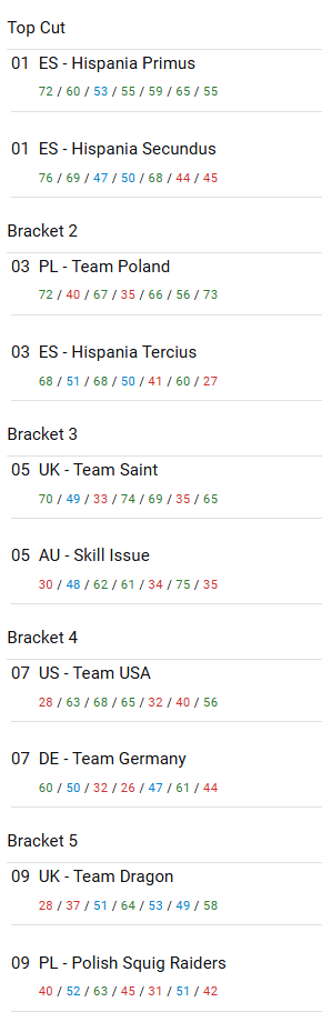 As we can see, the theoretical dominance that we all expected from Brood Brothers has crystallized in the fact that almost all countries have one in their ranks. The Brood Brothers are followed by other popular teams like Scouts, Kommandos Wyrmblade and Mandrakes. It should also be noted that all three Spanish teams had Phobos in their team.