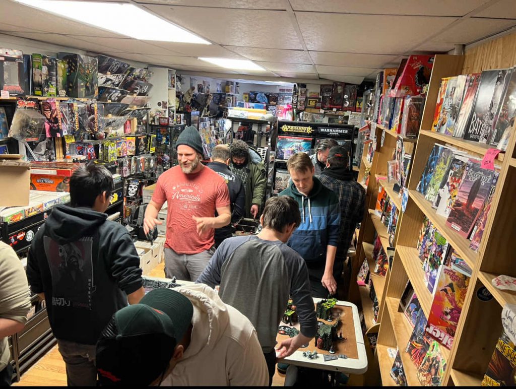 Comfy comic confines credit: Mike CNorth of New York City, Dobbs Ferry’s own Mike C continues his cities monthly tradition of getting some games in. With a 3-round, 10-person tournament out of Hard Core Comics (link).