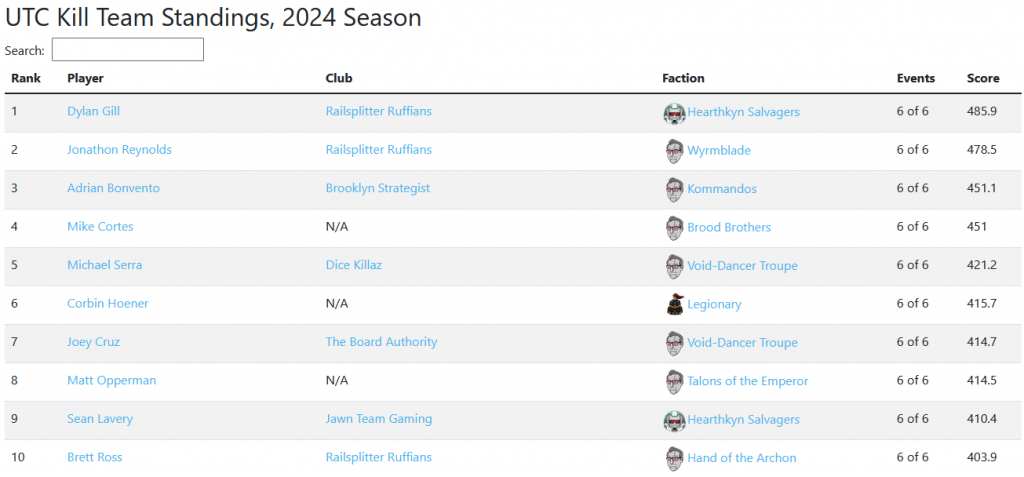 Big names in the global Kill Team scene like Orion, Adrian, and Dylan shoulder to shoulder, literally, with other UTC region champs and players in a tight 5-round over the weekend. Fresh off the heels of the big dataslate shake up to the team standings, most players came in hot and ready to battle their way to the top of the standings. If you're curious about the standings they're found here, under Kill Team season 2024.