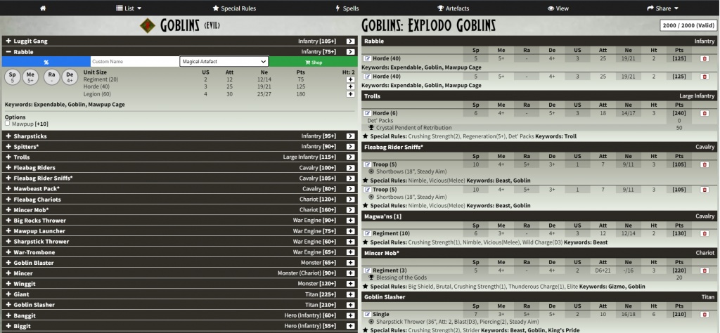 Mantic Companion's Kings of War Army List Builder has a nice layout, this being in browser on PC.