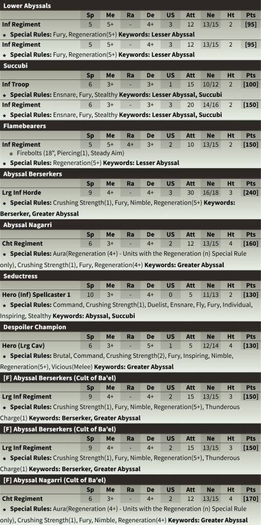 The Forces of the Abyss Army Box has a lot of great units - except the Imps. Don't worry about assembling those. Credit: Mantic Games.The Bloody Cardinal is a fantastic model and is perfectly usable as a Despoiler Champion. This unit is a great addition to an army, especially for beginner players as its main job is to give Inspiring and hit things. Simple.