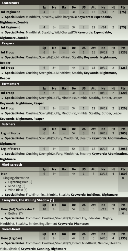 The Mind-Screech and Banshee from the Army box are the best support units the Nightstalkers can have, and the Banshee can be used as the Living Legends unit Esenyshra, The Wailing Shadow. This special Banshee is a real pain, hitting hard and casting spells that literally can move the opponent’s units around.