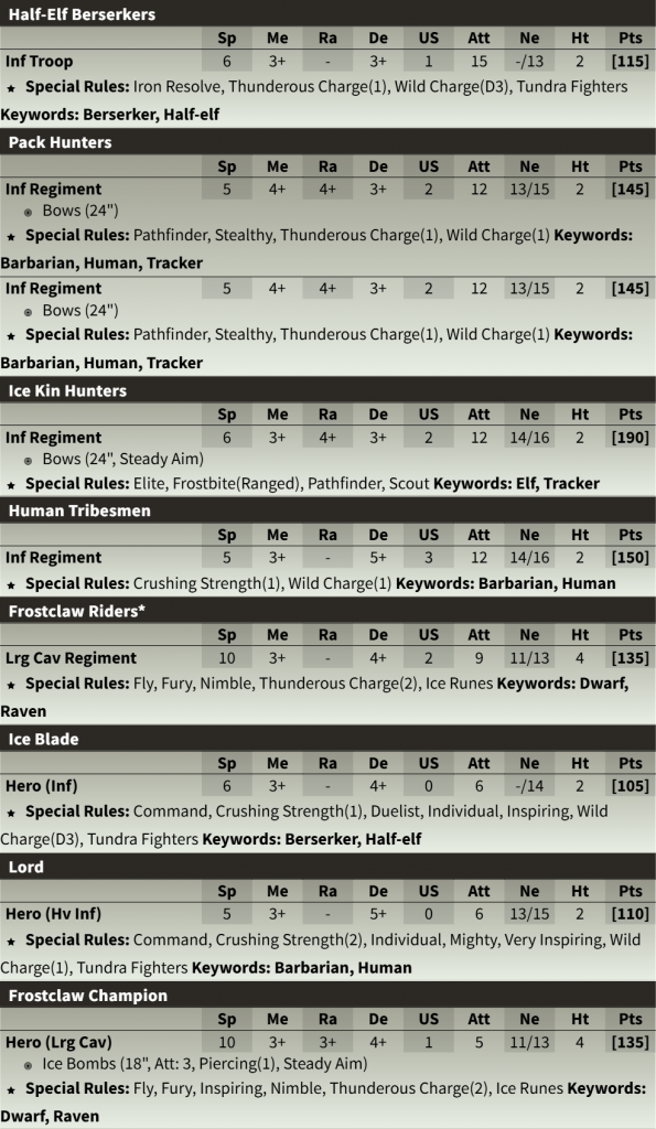 Northern Alliance Army Box is as solid as a block of ice. Credit: Mantic Games.The 20 Ice Kin Hunters/Half-Elf Berserkers in the army box should be used to make a Regiment of Ice Kin Hunters (Elves with bows) and a Troop of Half-Elf Berserkers (Half Elves with axes). This will bolster the ranged output of the army yet further, and the Troop of Berserkers will be perfect as a second line punishment.