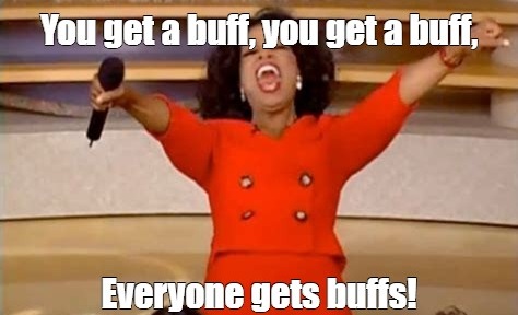 Everyone look under your chairs right now, buffs for everybody!