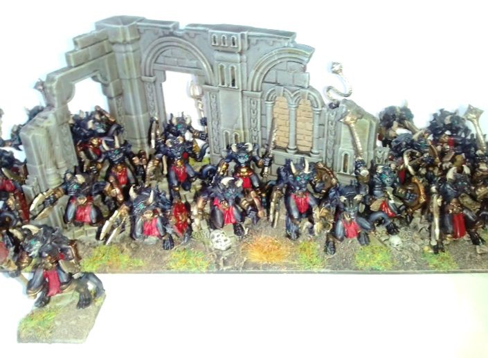 Lower Abyssals in the ruins. Credit: David Musgrave.It’s when they are supported that Lower Abyssals really shine. With a Nerve bump of +2/+2 from two Abyssal Guard units, the enhanced Regeneration (4+) from some nearby Nagarri and the Abyssal Mutations Command Order, a horde of Lower Abyssals might outlast the heat death of the universe. With all this support, even Regiments of Lower Abyssals might be considered useful, capable of taking a charge. This is all to say that the Forces of the Abyss has access to a great anvil unit with the right support.