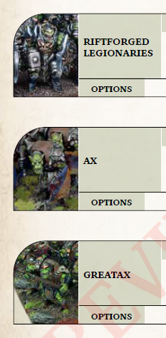 The Riftforged Orcs units are completely part of the Orcs army. This makes for a massive army list, although it’s not that different from the final Riftforged Orcs army list seen in Clash of Kings 2024 when a swathe of Orcs units were made available to their Riftforged cousins.