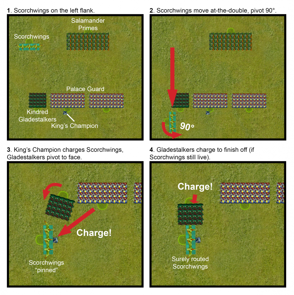 The best kind of chaff unit for catching a fast flanker unawares is the humble Individual unit. Able to charge in any direction, Individuals can launch themselves at fast flankers from wherever they are in the army (assuming line of sight and speed). This unit will need to inflict at least one point of damage to Disorder the fast flanker, so avoid sending in a poor wizard or standard bearer.