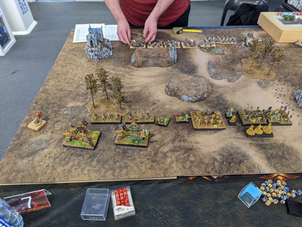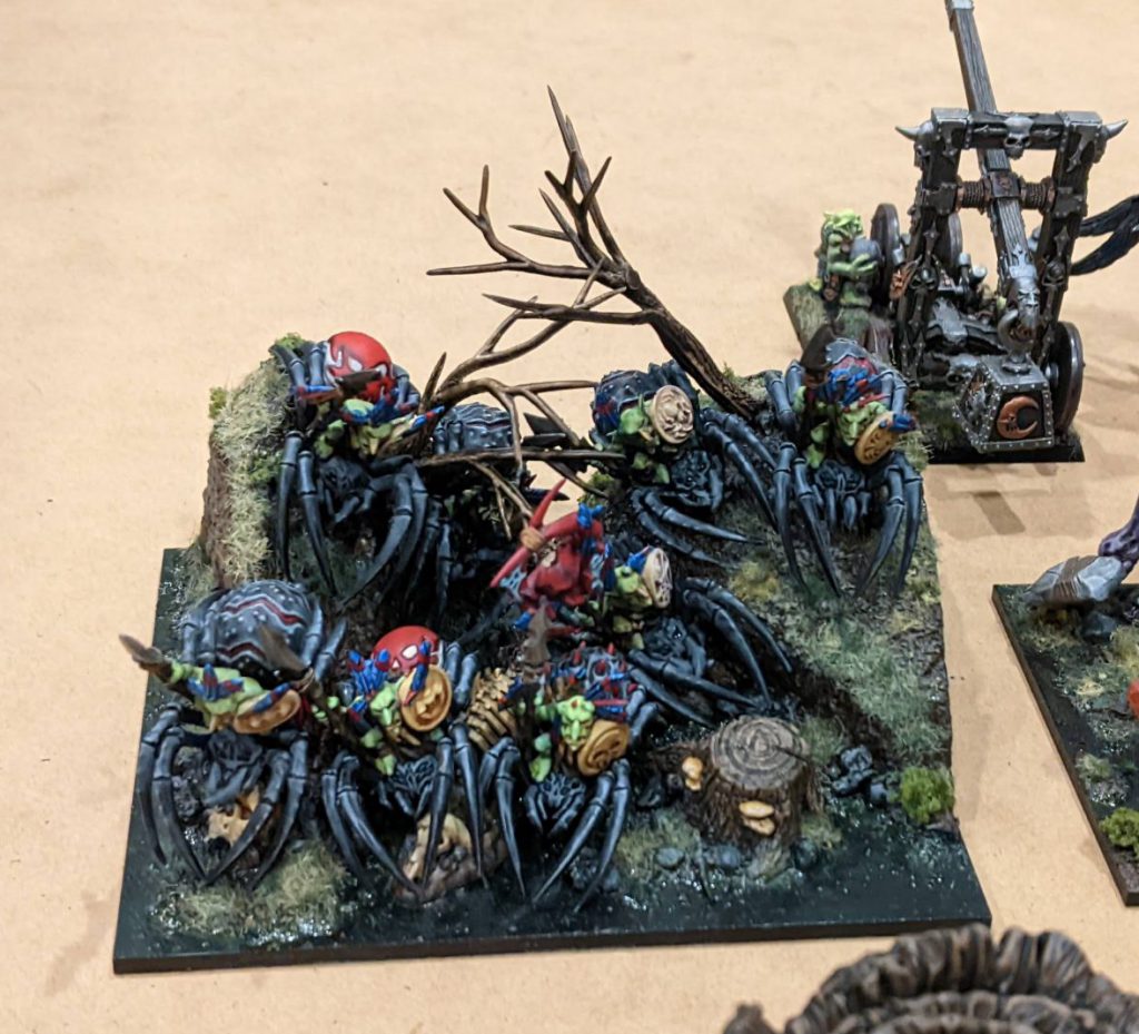 2 x Rabble (Horde) 3 x Trolls (Horde) 2 x Big Rocks Thrower 1 x King upgraded to Groany Snark 1 x King with Jareth’s Pendant and Sacred Horn 1 x Grupp Longnail 1 x Troll Bruiser 1 x Banggit 1 x Wiz with Bane ChantThis has been roughly the same list most of the time, with the only truly flexible options being the heroes. Recall I once had Magwa and Jo’os? Well, they’re just too much for a non-scoring unit. This has been replaced with a Banggit for cheap shooting, and a Wiz for the Bane Chant on units that need it (namely the Rabble and Grupp).