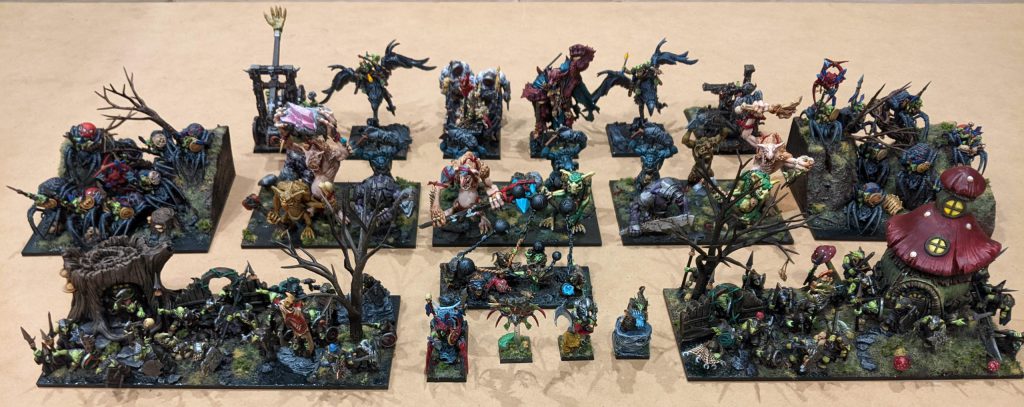The assembled Goblin forces of Black Blood Bog! Now with Blaster and extra Winggits!
