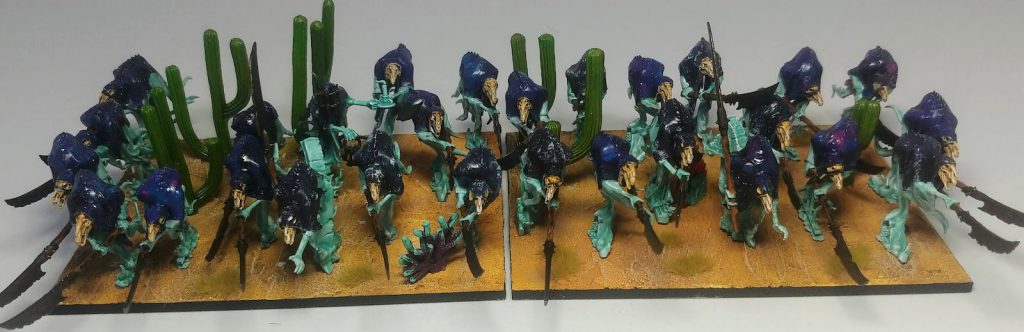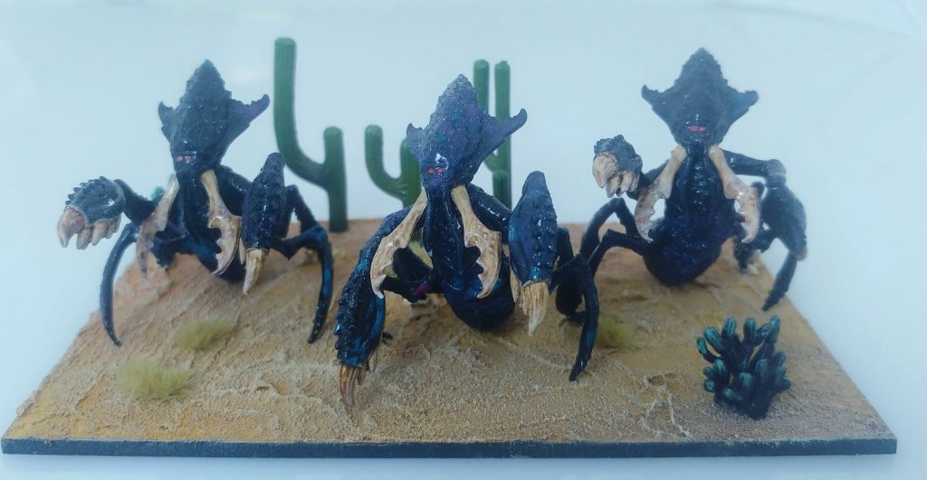 The Nightstalker Mind-screech (left), Reapers (right), and Shade (center). Photo credit: Urr.All in all, there’s quite a bit of hitting power along with good scenario play to give me a reasonable chance in all the objective/map control missions. That, combined with the weirdness that is the Nightstalkers, makes me pretty happy at where the list is at, so it’ll be up to me to pilot it properly and not make any silly mistakes. Given I’ve not yet been able to test it out in person, there’s a pretty good chance I will mess things up, but I’m just keen to be able to go out and play in person again.