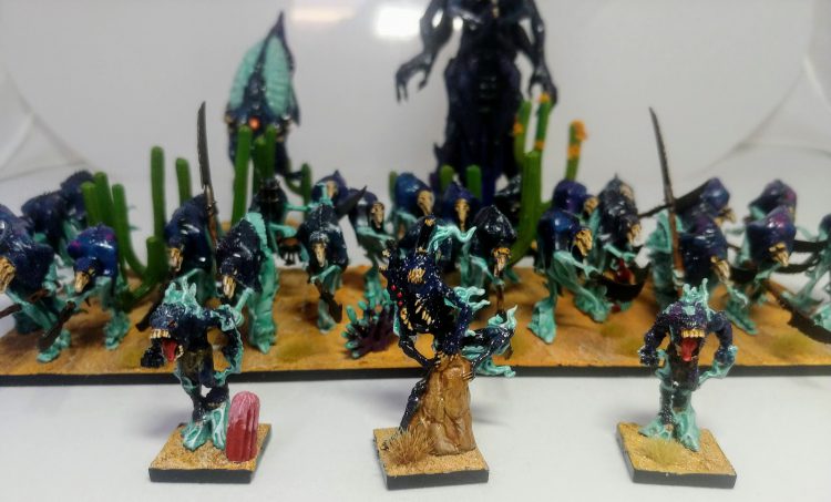 Cytoplasm: The rapid transformation that Urr’s Nightstalkers underwent to go from a relatively slow army to the lightning fast nightmare that it is now really took me by surprise, and I like to think I helped in pushing him towards this end. The slower but stronger Nightstalker such as the Butchers and the Shadowhulk were often my first worry in each game, but in almost every case I managed to nullify or kill them. The Void Lurker on the other hand was a great addition that added a lot of anxiety to my games. It isn’t a game winner by itself, but I couldn’t afford to let it run amok behind my lines. Did I spend too much energy trying to stop it in half the games? Almost certainly, hence it’s inherent value. The inception of the Shade with the Blade of the Beastslayer was a surprising hit (pardon the pun). It combines the excellent maneuverability of flying individuals, with the punchiness of the magic blade against monsterish units, and a final garnish being the inherent Dread the character possesses (-1 to the Nerve of nearby enemy). Very often there was little I could do about the Shade, and there may have been games where I got a little too obsessed with the imagined threat he posed. Perfect application of Nightstalkers in my opinion.