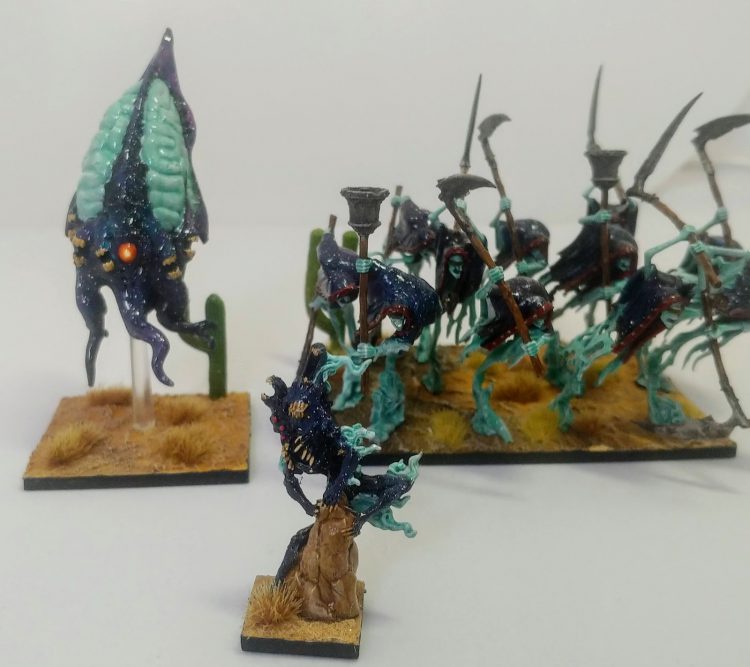 Nightstalker Fiends using D&D Nolzur's Marvelous Miniatures' Ankhegs. Photo credit: Urr.The Phantoms are in the army as Nimble (extra pivot during movement) fliers to contest objectives, hunt low armour units, or to fly in the way of the opponents big hammers and take the hit. They don’t have the strongest offensive output, so you can’t rely on them for too much, but they can take little ranged units or war machines, and their potential for a flank or rear charge keeps your opponent on their toes. The Soulflayers and Void Lurker are included for much the same reason. This high number of speedy fliers can really punish your opponent if they don’t see it coming, and even if they do, it forces them to be extra cautious.