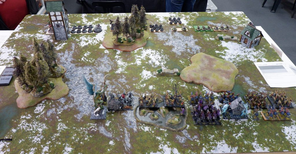 My List3 x Night Raider Regiments - All Bows 2 x Fallen Hordes - Blessing of the Gods, Brew of Strength 2 x Snow Fox Regiments 1 x Cavern Dweller 1 x Magus - Lightning Bolt, Bane Chant, Crown of the Wizard King 1 x Magnilde 1 x Kruufnir 1 x Lord on Chimera - Pipes of TerrorThis will be a pretty familiar list to those who read our CanCon articles, and really any battle report I’ve written in the last year or so. I keep the same core of the Fallen Hordes, Snow Foxes and Unique Heroes, but there’s been a few changes as point levels are different, and my Night Raider models have arrived. The Night Raiders replace the old Magus Conclaves, and while they are more expensive, they shoot, score, and fight reasonably well, so they have a lot more flexibility, though they lack the piercing.