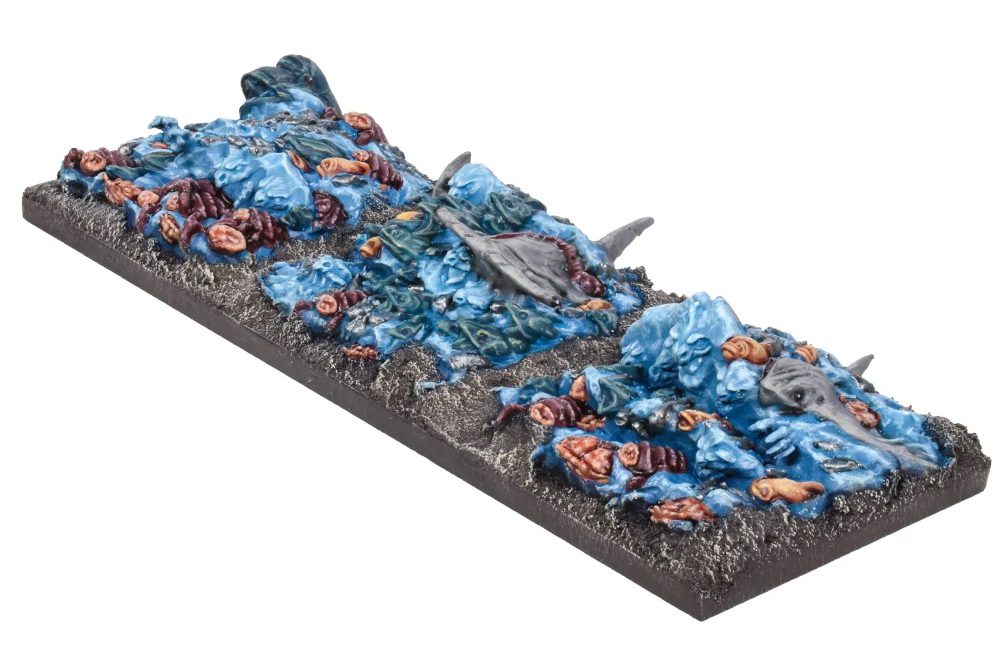 A swarm of sea critters scuttling in the beach foam. Credit: Mantic GamesThe almost identical unit in old Trident Realms was the Nokken, which has now been removed from the army list and made an upgrade to the Tidal Swarm; Nokken Shepherd. Previously Nokken were good for their shooting, but nothing else; in every other way they were inferior to the Tidal Swarm. Now we get both! A shooting Tidal Swarm, and only for a small price. These shots are a few (6 for a regiment, 12 for a horde) Piercing (1) shots at 12” range, hitting on 5+ with Steady Aim. It’s not going to wipe out units, but it might remove enemy chaff and soften up the enemy! If there’s a few points leftover, this might be the perfect upgrade rather than a Blade of Slashing on a Mythican.