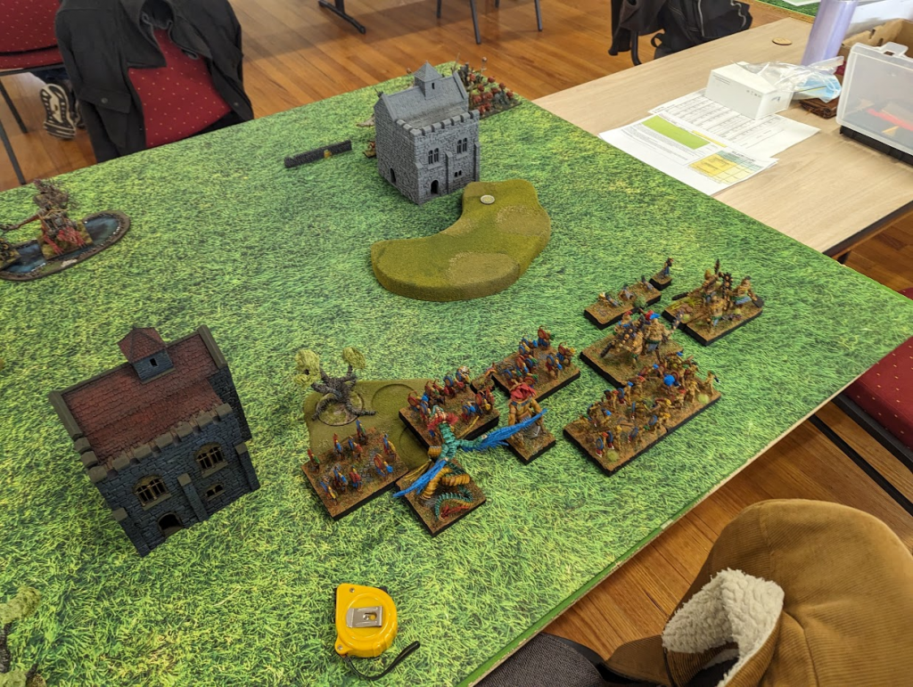 1 x Men-at-Arms Spearmen (Horde) with Hammer of Measured Force 2 x Sisterhood Scouts (Troop) with Scrying Gem 2 x Elohi (Regiment) 1 x Elohi (Horde) with Celestial Fury 2 x Ogre Palace Guard (Horde) 2 x Phoenix 1 x War Wizard on Horse with Diadem of Dragonkind 1 x Gnaeus SallustisViv’s Basileans are the only Basileans I have ever fought. Last year they were much more Elohi-heavy, with all the Elohi heroes. This time around the new version of the Phoenixes are bringing the heat, along with the War Wizard. It’s a lot of shooting that’s hard to stop.