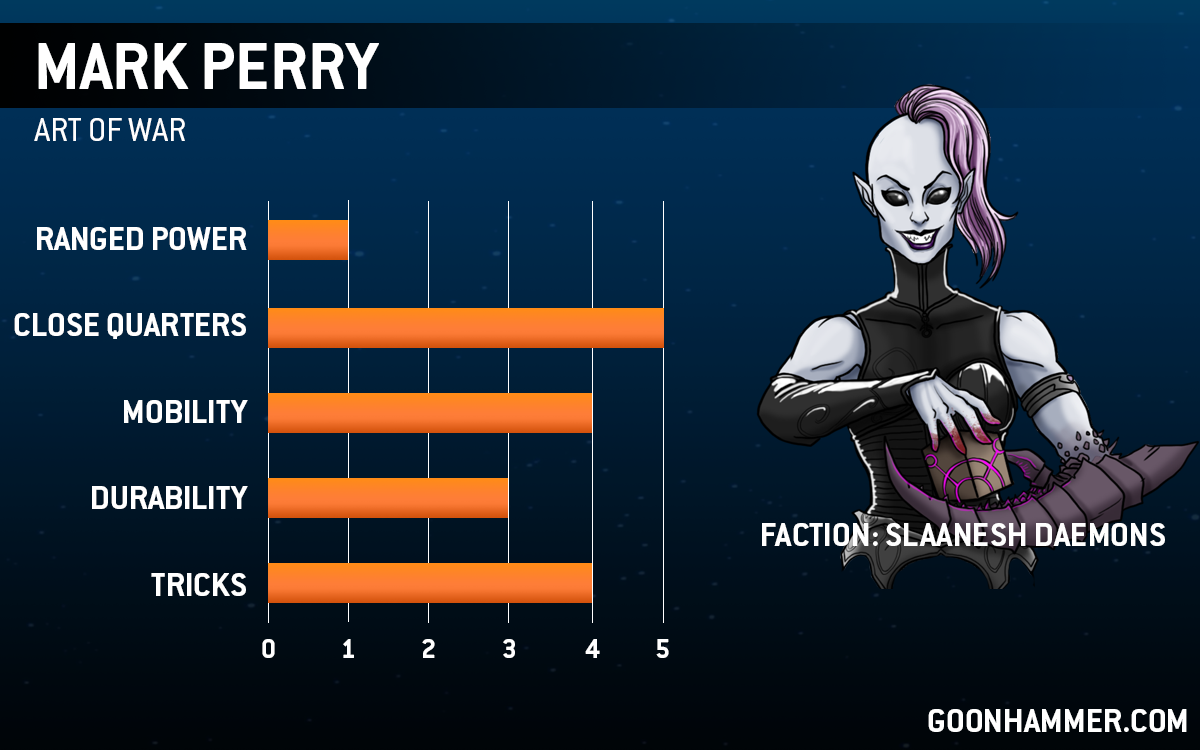 Mark “the Beast” Perry is a foremost expert in aggressive and anti-meta style lists. Rather than playing stock standard meta lists that other top players will be planning to counter, Mark prefers designing lists that are equal measure unexpected and powerful, taking advantage of rules and synergizes that are underexplored and underrated. With a decade of experience under his belt, Mark has spent the last five years honing his craft as a consistent GT and Major winner with 9 GT wins, 3 Major wins, 6 Best Overalls.