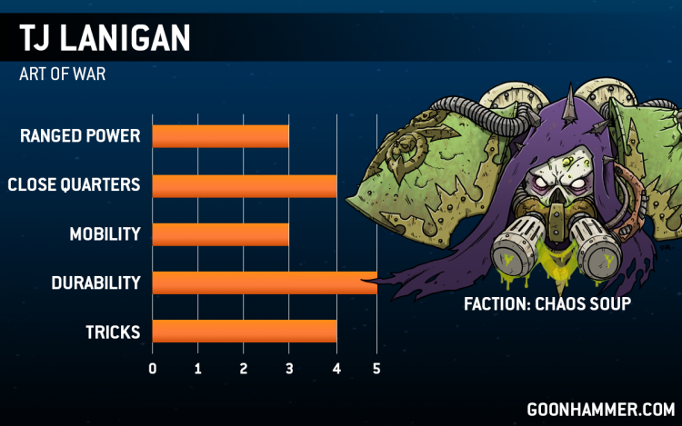 Although an Avid Competive Try hard and Self proclaimed " Lord of Chaos" , TJ is most notably known for wearing a shirt and tie to literally every event he attends. After a year of driving around the area and going to any event that actually manage to take off, what better way to end the year then with a bang. He will be piloting a list with some of his favorite models in from this year and hopefully some new options models that will soon be among his favorites. What we're trying to say is that he couldn't decide what Daemon Primarch to take so...