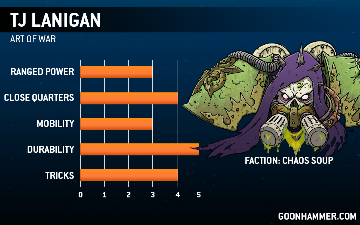 Credit: Robert "TheChirurgeon" JonesWhat's worse for opponents that don't have a good way of eliminating him is that Mortarion is, most of the time, going to be sporting a massive bubble of The Droning, vastly reducing the ability of the opponent to maneuvre while he's still alive and buying more time for the psychic onslaught that Magnus and the Lord of Change provide to reap its terrible toll. Bringing Mortarion along as the Warlord does impact on the LoC's toughness by denying him access to the Incorporeal Form warlord trait, but he still puts up an impressive invulnerable save thanks to the Impossible Robe, which still makes removing him a steep task for many lists. Given what TJ is going up against out the gate it could still just about prove a singular weak spot in an otherwise near impregnable force, but even then the outrageous capacity Mortarion brings to dictate the pace of the game might prove worth it.