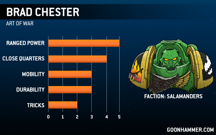 They may have ebbed a bit in popularity since the Codex hit, but no true celebration of the 9th Edition we've played thus far would be complete without a Salamanders list! They couldn't be in better hands too - Brad has put in the reps with these Green-clad heroes, and under his guidance they're sure to unleash some vicious volleys of plasma and flame.