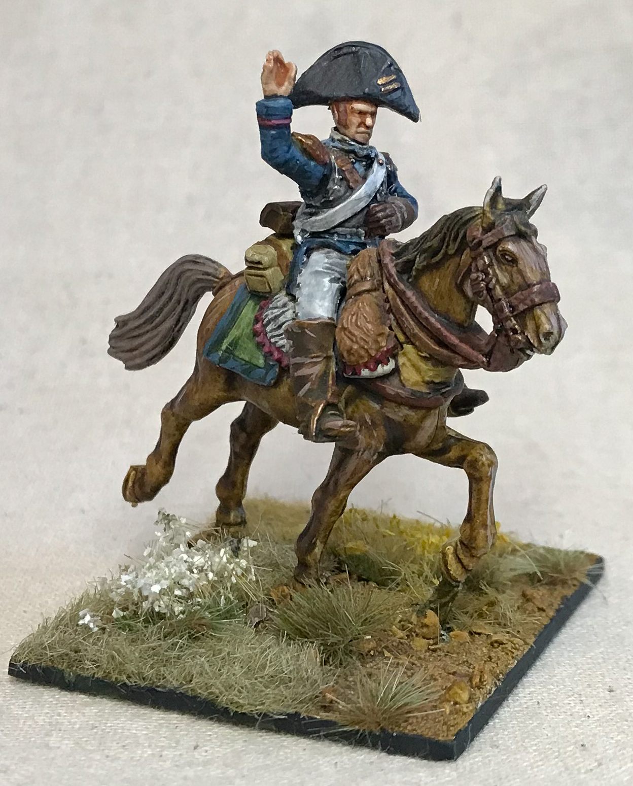 Moving up the ranks, A Chasseur Officer from Front Rank Miniatures is my Tier III Capitane, and a plastic Perry Cuirassier with a suitably nice hat acts as my Tier IV Colonel. This gives me one commander model for each unit I've been working on so far - and there's a spoiler there for next time - and an overall commander. These are likely to be moved around, promoted (and demoted) as the army expands, but for now, I have the iron will, determination and at least a little of the élan the army needs.