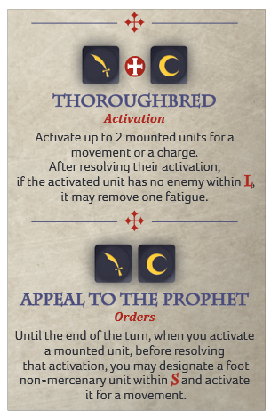 - Thoroughbred - movement that loses fatigue is fantastic, but I usually used it to move up towards and enemy, then shot, then moved away. That meant all my units ended up incredibly fatigued on very few activations. I should have planned ahead - get my units up to within bow range, then shoot and use thoroughbred to run away, or charge and use thoroughbred to sod off afterwards.