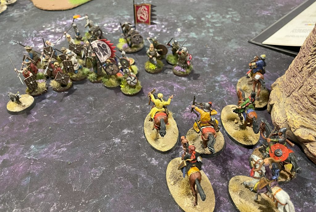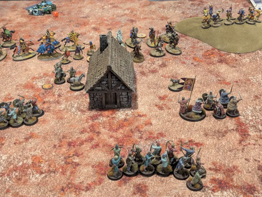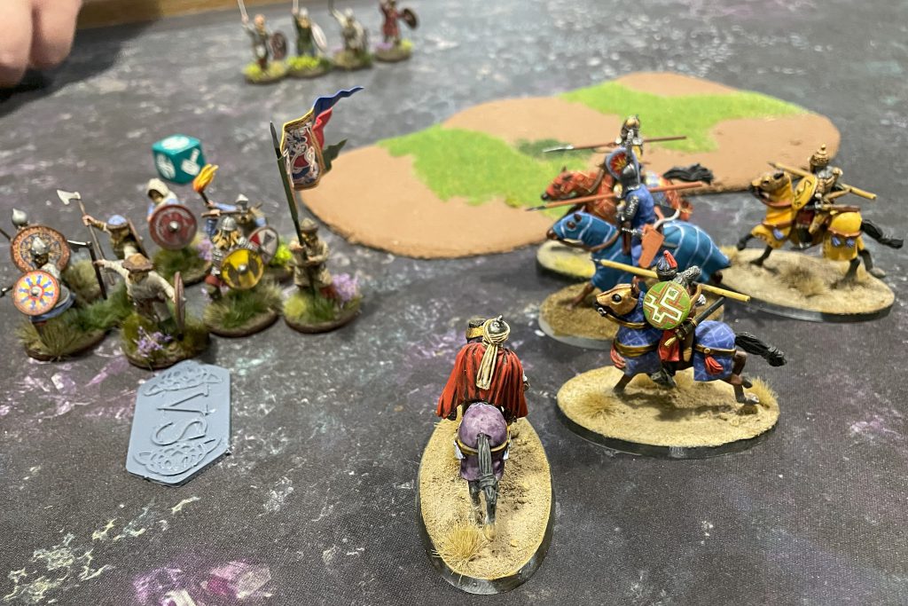 - Brotherhood - activate a unit to shoot and get additional attack dice on the charge. A powerful ability, but I used it consistently with the levy bowmen. That meant I had to manage getting two units into range on the right target - not too hard, but difficult to pull off when I needed it. Partnering a composite bow unit and a mounted warrior unit together would have been much more useful, letting me pounce on isolated units and knock them out.