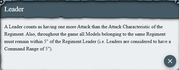 Underneath the special rules and abilities we have what is known as command models. Typically for infantry, they come in with a leader model. There are no special models that can be assigned as a leader, so you need to clearly identify who is the leader. It's typically the model with the pointiest hat or, in the example below, the one with the longest spear.