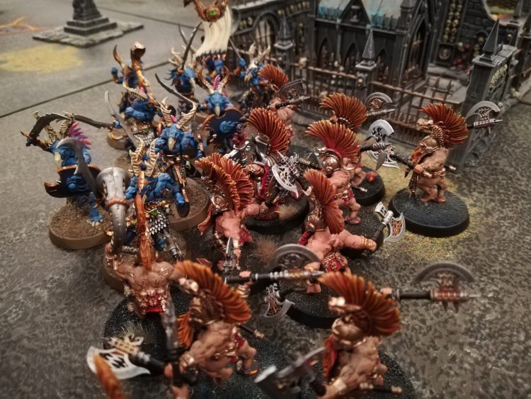 Morathi shapes her allotment of souls into creatures made in her own image (and we’re not talking her old world pleasure-babe image, we’re talking the deformed and hideous gorgon image that Slaanesh’s intestines warped her into) and we see ranks of melusai and khinerai added to the daughters of Khaine cult. We’re not sure exactly what Malerion has done with with his, yet, (but here’s hoping for a new shadow aelf army one day soon.)